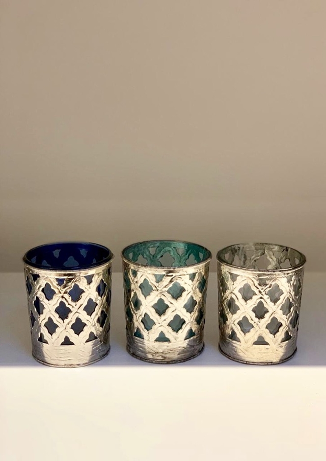 Portavela Metal con vidrio color Verde Agua